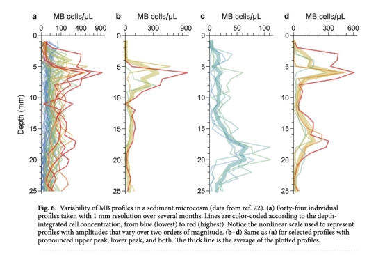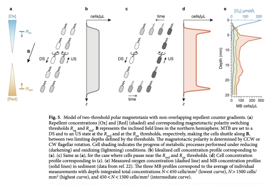 MB菌的雙峰分布驗證了氧化還原趨性模型的預測(穿梭于氧化層與還原層之間)。