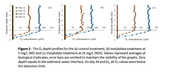 微電極垂直分布數(shù)據(jù)(圖2、3):通過(guò)丹麥Unisense微電極測(cè)量沉積物中O?和H?S的毫米級(jí)分布,揭示硫化物生成的空間異質(zhì)性及鉬酸鹽的延遲效應(yīng)。