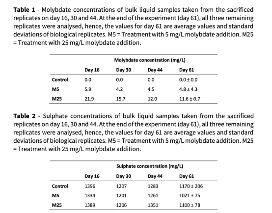 單次添加鉬酸鹽可維持61天的抑制效果,殘留鉬酸鹽持續(xù)存在(表1),證明其作為長(zhǎng)效策略的潛力。
