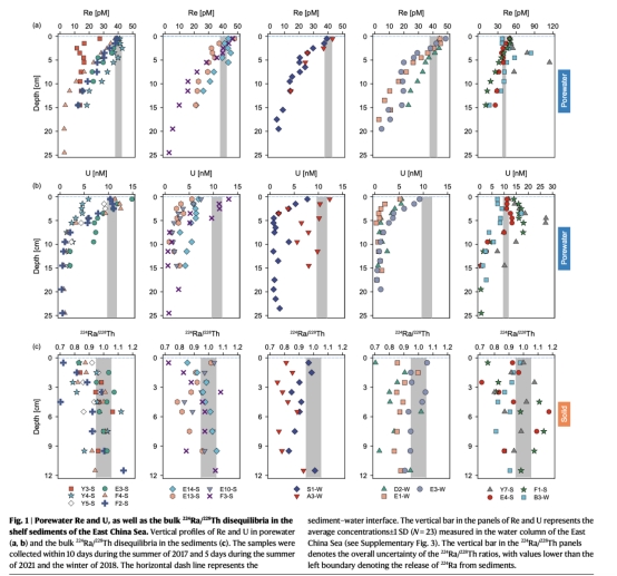 在東海陸架區(qū)采集夏冬兩季沉積物巖芯,分析孔隙水中Re、U濃度梯度及224Ra/228Th不平衡。