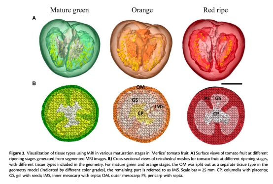 通過MRI獲取番茄果實不同成熟階段的三維幾何結(jié)構(gòu);