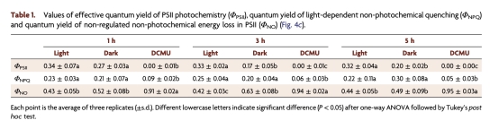 葉綠素熒光參數(圖4、表1):光照下Fv/Fm為0.62,DCMU處理降至0.17。意義:根部光合系統II(PSII)功能完整,但受抑制后嚴重受損。