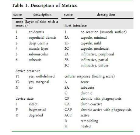 評估傳感器的生物相容性、降解狀態和宿主反應(圖7、表1-3)。