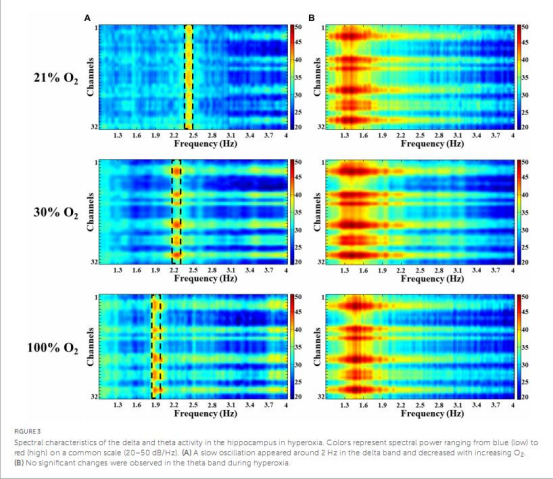 該研究探討短期(60分鐘)輕度(30% O2)和重度(100% O2)高氧暴露對大鼠海馬體的影響。結果顯示,高氧導致海馬神經元損傷(表現為“暗神經元”增多),并改變網絡振蕩(如delta頻率降低)及神經元放電特性(錐體細胞放電頻率增加,中間神經元活動異質性增強)。提示臨床及非醫療場景中高氧療法需謹慎。