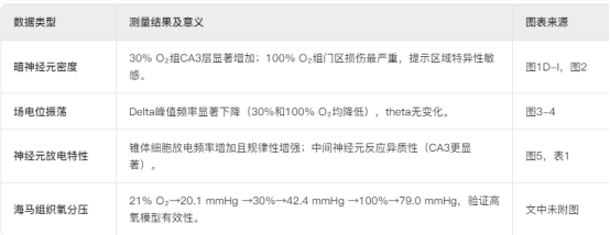 核心目標:評估短期輕度與重度高氧對海馬神經元存活、網絡活動和電生理特性的影響。