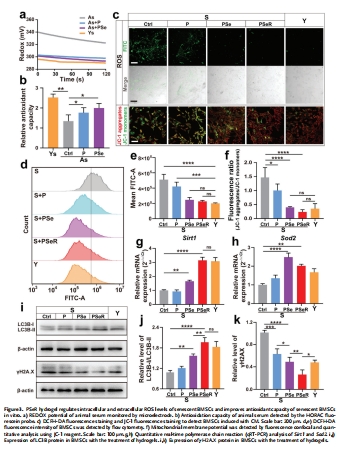 材料創新:PSeR水凝膠首次實現 細胞內/外ROS同步清除 和 自噬誘導 的三級調控。
