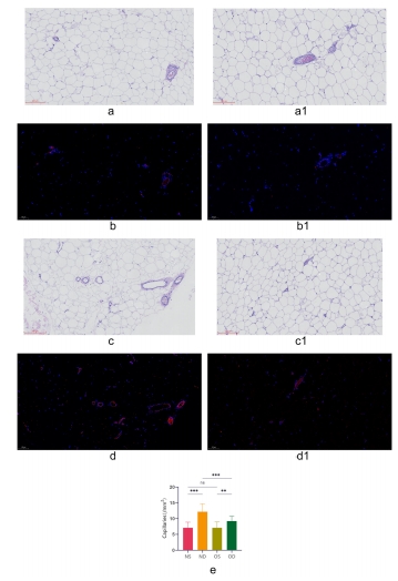 毛細血管密度 圖5 dSAT血管密度高于sSAT,但OW組dSAT血管密度低于NW組(9.21 vs 12.17/mm2)。證實血管稀疏化是缺氧主因。