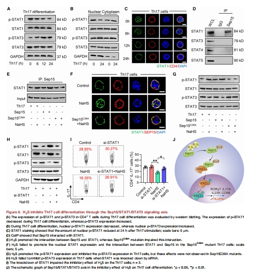 H?S通過(guò)硫化Sep15C38調(diào)控STAT1/STAT3磷酸化,抑制Th17分化(圖5, 6)。