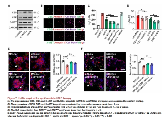 apoVs繼承親代細(xì)胞H?S生成能力,且依賴(lài)此功能治療SLE(圖7)。