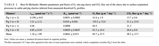 揭示變異性:不同豬糞的呼吸速率差異顯著(如Pig 3的CO?通量51.2 g m?2 day?1 vs. Pig 1的13.7 g m?2 day?1),反映了糞便組成(如干物質含量、微生物群落)對表面呼吸的影響,指導模型需考慮糞便異質性。
