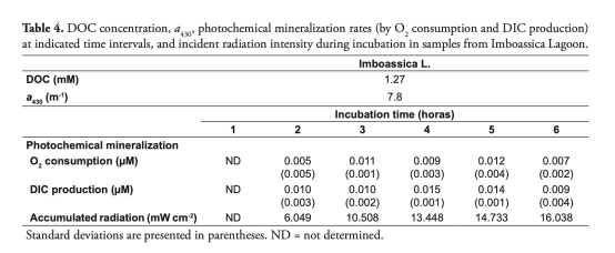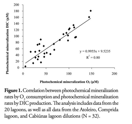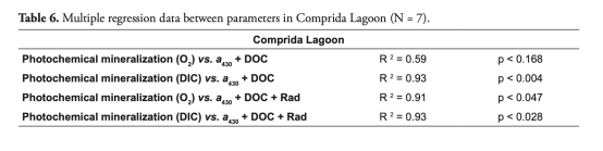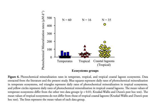 熱帶腐殖質(zhì)沿海潟湖(如Preta潟湖)的光化學(xué)礦化速率達(dá)147.856 μM O? 6h?1(表7),為文獻(xiàn)記載最高值。