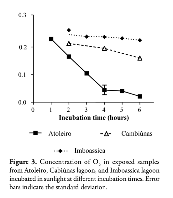 意義:驗(yàn)證光化學(xué)礦化的化學(xué)計(jì)量關(guān)系(O?消耗: DIC生成 ≈ 1:1),為高鹽度湖泊提供可靠檢測方法;揭示超腐殖系統(tǒng)(如Atoleiro)中氧氣快速耗竭(4小時消耗>80%)是礦化過程的關(guān)鍵限制因素(圖3)。
