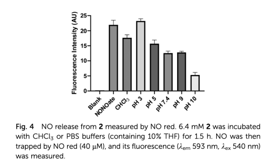 利用熒光探針NO-red檢測2在不同pH條件下釋放的NO。