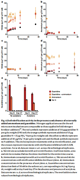 農業土壤:胍在硝化活性土壤中被氧化為硝酸鹽,且被乙酰炔抑制(圖6e)。