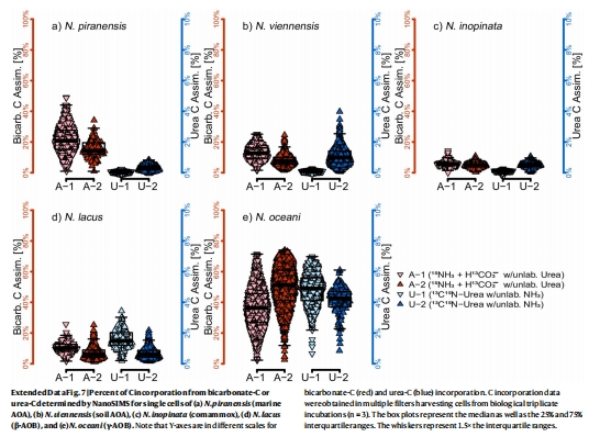 β-AOB同化的氮主要來自尿素(>80%),而非胞外氨(擴展數據圖4b-c)。