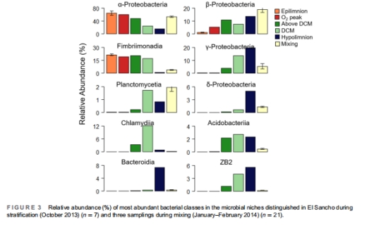 證明分層期底層缺氧(圖1A),直接解釋厭氧類群(如δ-變形菌、OD1候選門)的富集(圖3)。