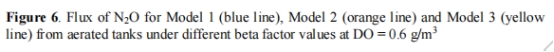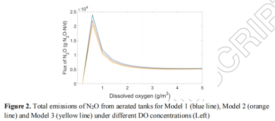 DO=0.6 g/m3時(shí)排放最大(EFN?O≈2.4–2.8%),模型差異顯著(圖2)。