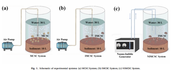 3組實驗系統(MCSC、IMCSC、NIMCSC),模擬養殖池塘(水+沉積物)。