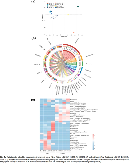 NIMCSC中微生物共生關系增強(正相關邊比例高),核心菌屬(Haliangium)主導脫氮。