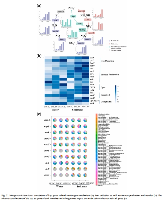 NIMCSC中好氧反硝化基因(napAB、nirS、nosZ)表達上調,DNRA途徑(nirBD)受抑制。