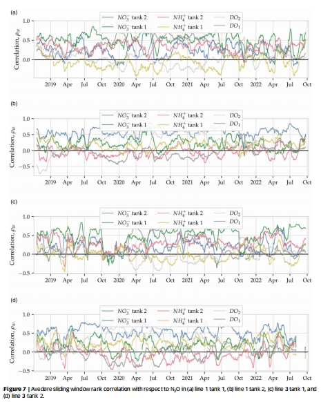 Avedore(Biodenitro工藝):N?O與相鄰池NH?相關(guān)性較高(圖7);