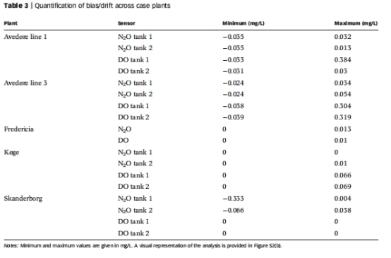 負(fù)值/漂移 22%變量存在負(fù)值;15/18個(gè)DO/N?O傳感器存在漂移(表2, 表3) 傳感器校準(zhǔn)不足(如Skanderborg廠N?O漂移達(dá)-0.333 mg/L),影響長(zhǎng)期監(jiān)測(cè)準(zhǔn)確性。