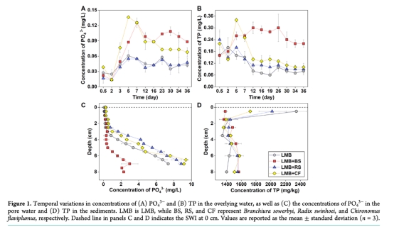 LMB效能:大型無(wú)脊椎動(dòng)物不改變LMB整體固磷量(各組TP沉積量無(wú)顯著差異),但通過垂直重分布影響局部磷循環(huán)。