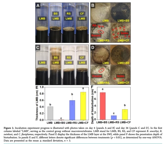 量化擾動(dòng)強(qiáng)度:DO剖面變化反映不同生物(BS > CF > RS)的擾動(dòng)深度差異(圖2F),為評(píng)估LMB層破壞程度提供依據(jù)。