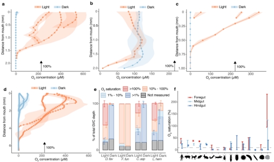 GVC內(nèi)氧氣濃度剖面(光照 vs. 黑暗)(圖2a–d)。