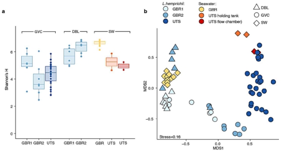 圖5:L.hemprichii在GBR與水族館的微生物組對比