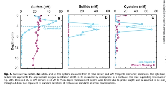 孔隙水化學(xué):測量硫酸鹽、硫化物、半胱氨酸濃度(圖4)。