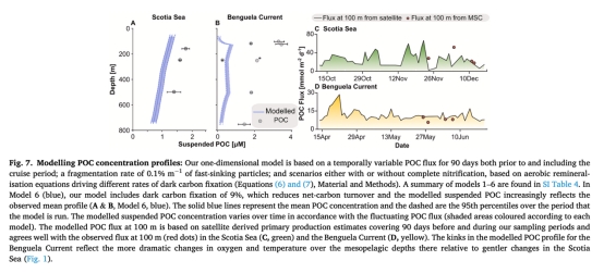 需結合粒子破碎、側向輸運(本格拉寒流)和化能自養(硝化作用)平衡懸浮POC庫(圖7)。
