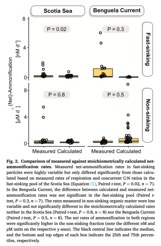 數據:低C:N(富氮)顆粒周轉更快(R2=0.89),本格拉寒流相同C:N下周轉快于斯科舍海。