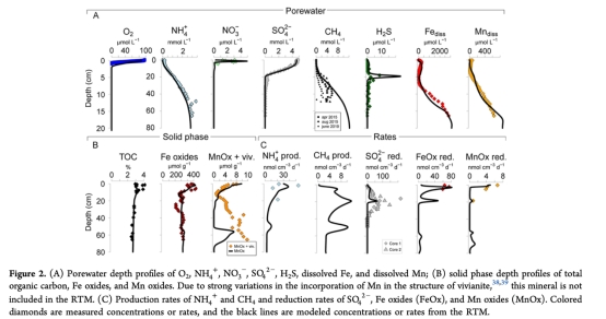 數(shù)據(jù):O?在沉積物-水界面(SWI)的陡梯度(0.7 cm耗盡)指示有機(jī)質(zhì)快速降解。