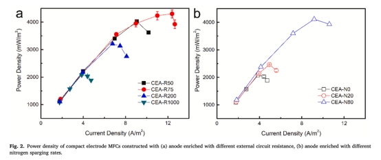 意義:耐氧生物陽極顯著提升緊湊電極MFC性能,功率密度達行業領先水平。