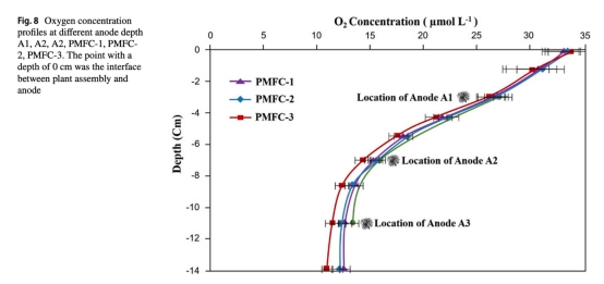 環(huán)境指標(biāo):Unisense微電極測(cè)量陽(yáng)極區(qū)溶解氧梯度(圖8)。