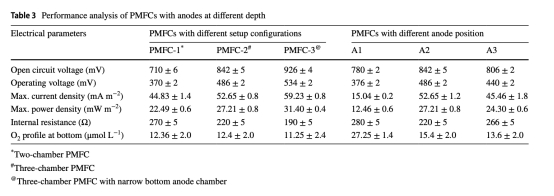 測(cè)得A2位置(7 cm深)氧濃度15.4 μmol/L,低于A1(27.25 μmol/L)但高于A3(13.6 μmol/L),結(jié)合功率數(shù)據(jù)(A2 > A3 > A1),證明中度深度(A2)兼顧低氧環(huán)境與質(zhì)子傳遞效率。