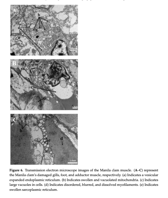 評估雙重脅迫對蛤類細胞結構的損傷程度,為水產養殖逆境管理提供依據。