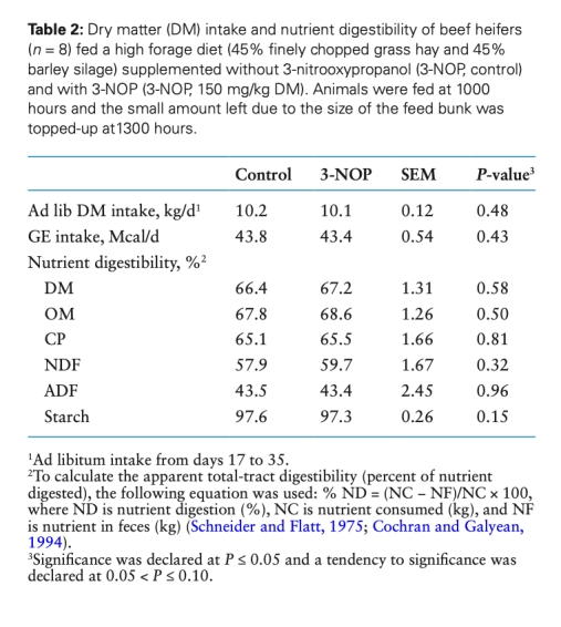 添加3-硝基氧丙醇的牧草日糧降低肉牛腸道甲烷排放,且不影響采食量和表觀全消化道消化率