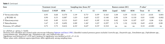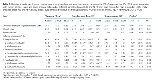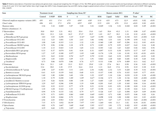 瘤胃微生物群落主要門水平(擬桿菌門、厚壁菌門)未改變,但3-NOP降低甲烷桿菌屬豐度(表7-8)。
