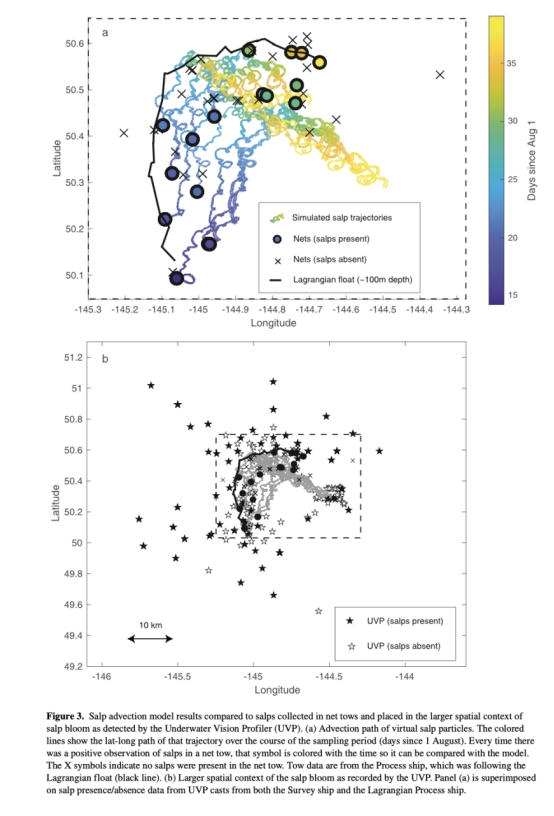 研究量化了2018年夏季亞北極東北太平洋樽海鞘(Salpa aspera)水華期間的碳輸出過程。樽海鞘通過三種機制顯著增強生物碳泵(BCP)效率: