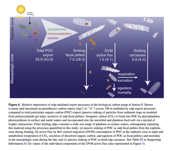 量化樽海鞘水華期間的多途徑碳輸出(糞便顆粒、DVM主動輸送、尸體下沉)。