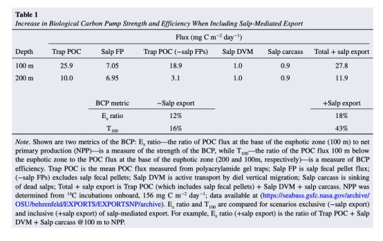 通量:平均1.0 mg C m?2 d?1(占樽海鞘總輸出的11%)。