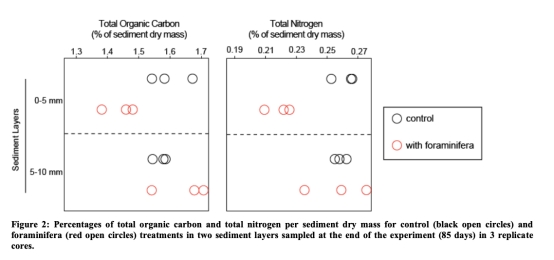 有孔蟲減少表層沉積物有機(jī)碳含量(TOC),促進(jìn)有機(jī)質(zhì)礦化。