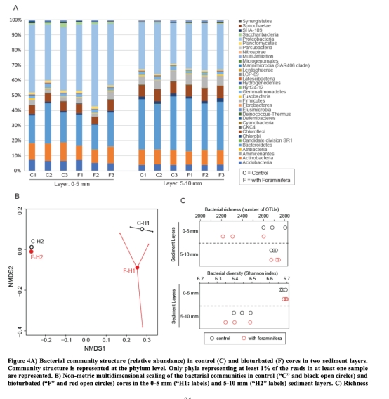 有孔蟲活動(dòng)降低細(xì)菌豐富度,并通過(guò)深層氧氣滲透抑制硫酸鹽還原菌,證明其通過(guò)生物灌溉影響微生物群落組裝。