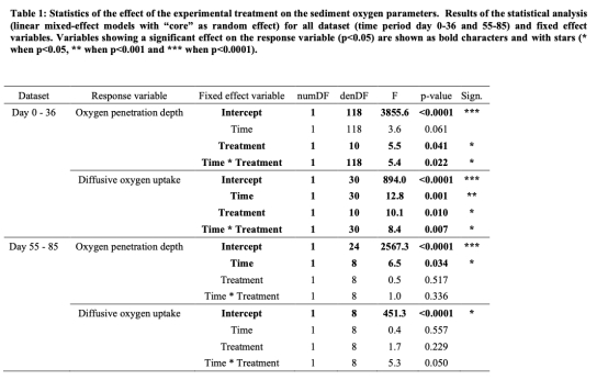 有孔蟲使OPD增加0.7 mm(前36天),DOU降低(0.025→0.011 nmol/cm2/s)。意義:證明有孔蟲通過(guò)生物灌溉增強(qiáng)沉積物氧化,減少厭氧代謝,為理解單細(xì)胞生物對(duì)沉積物氧化還原狀態(tài)的調(diào)控提供直接證據(jù)。