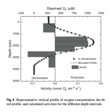 電極以100 μm間隔自動剖面掃描(圖4),結合穩態模型(Berg et al. 1998算法)計算深度積分NPP(mmol O? m?2 h?1)。