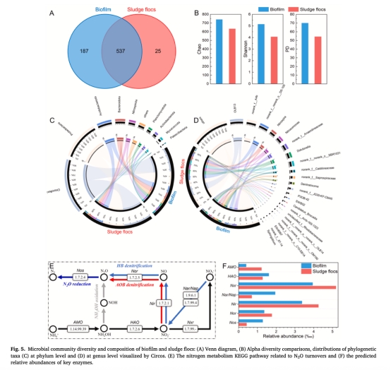 高通量測序分析生物膜與懸浮污泥的微生物群落及關鍵酶基因差異(圖5)。