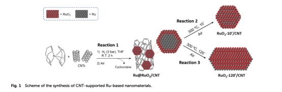 有機(jī)金屬法合成CNT負(fù)載Ru NPs(Ru@RuO?/CNT)(圖1)。
