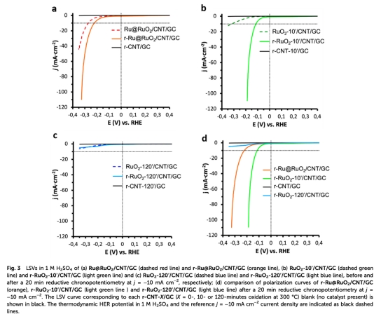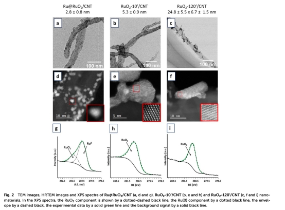 空氣熱處理(300℃, 10 min或120 min)制備全RuO? NPs(RuO?-10/CNT)和RuO?納米棒(RuO?-120/CNT)。